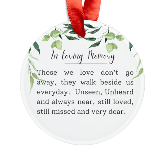 Leaf Designs- "In Loving Memory" Round White Acrylic Ornament
