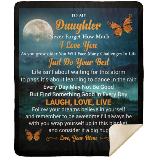 "To My Daughter" Butterfly Sherpa Blanket 50 X 60