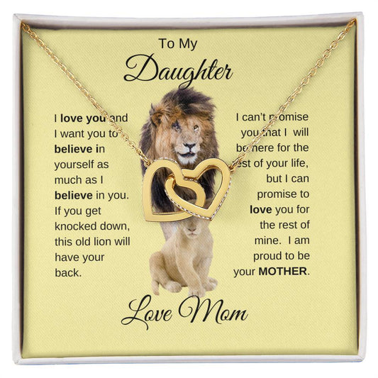 To My Daughter Necklace with Lion Card - Love Mom - Interlocking Hearts
