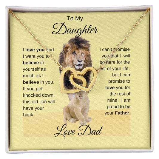 To My Daughter Necklace -Lion Card -Love Dad - Interlocking Hearts
